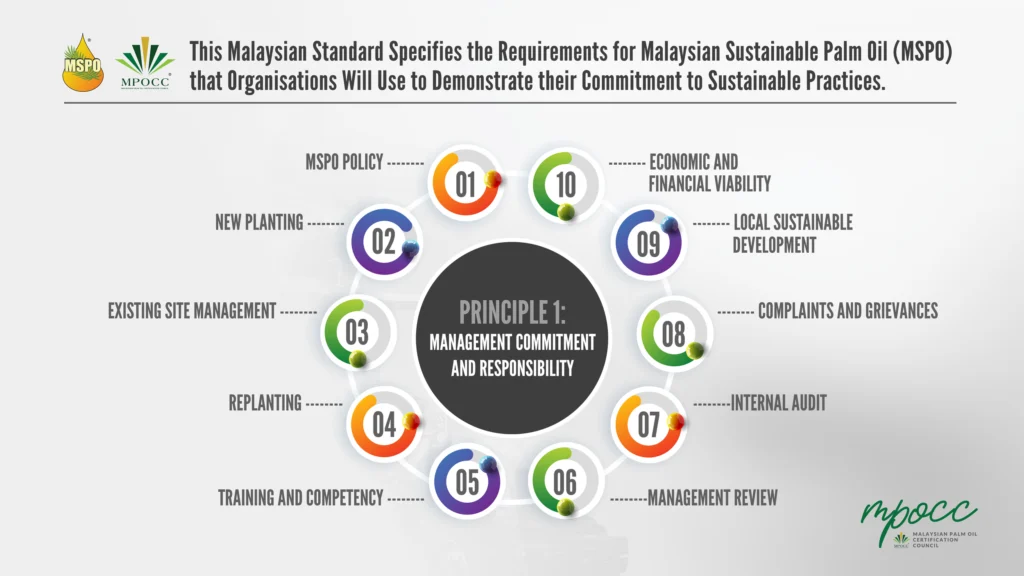 Principle 1 of the MSPO standard has listed 10 criteria to demonstrate management commitment and responsibility.
